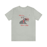 This classic unisex jersey short sleeve tee fits like a well-loved favorite. Soft cotton and quality print make users fall in love with it over and over again. These t-shirts have-ribbed knit collars to bolster shaping. The shoulders have taping for better fit over time. Dual side seams hold the garment's shape for longer.